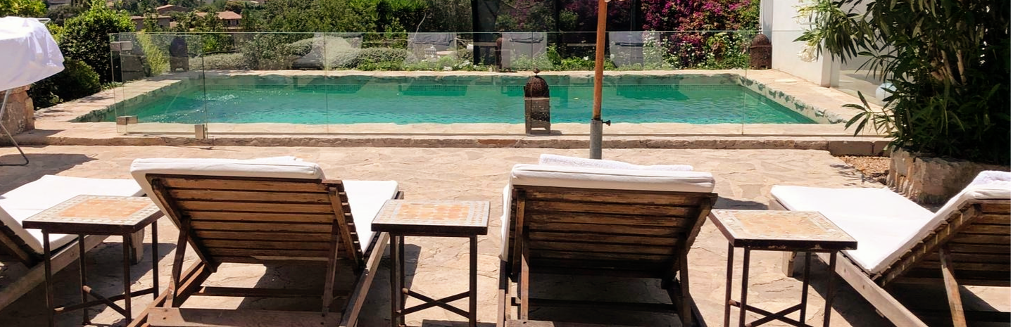 The Finca Can Sard is a historic building. The house was built in a typical Mallorcan style, it has 4 bedrooms and 3 bathrooms. It also disposes of a kitchen and a fruit and vegetable garden. The kids can play in the play area which has a basketball hoop, a football place, and a tennis net. The house also has a skimboard area which you can put on the football field. The house has a pool with a length of approximately 4 meters and a depth of 1.50-3 meters. For adults, you could use the sauna that is located next to the gym. The gym has a weight bank, a pull-up pole, a TRX rope, a yoga mat, and a dumbbell. The kids could also go on the trampoline located in the main garden. To relax you have the sunbeds with a beautiful view of the city Soller.
